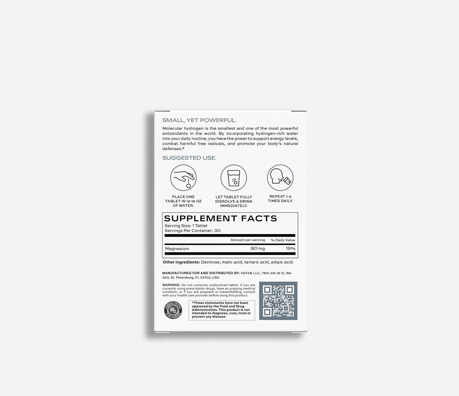 A: While H2 TAB will support your body’s natural metabolism and contribute to natural weight loss, it will not cause weight loss on its own.