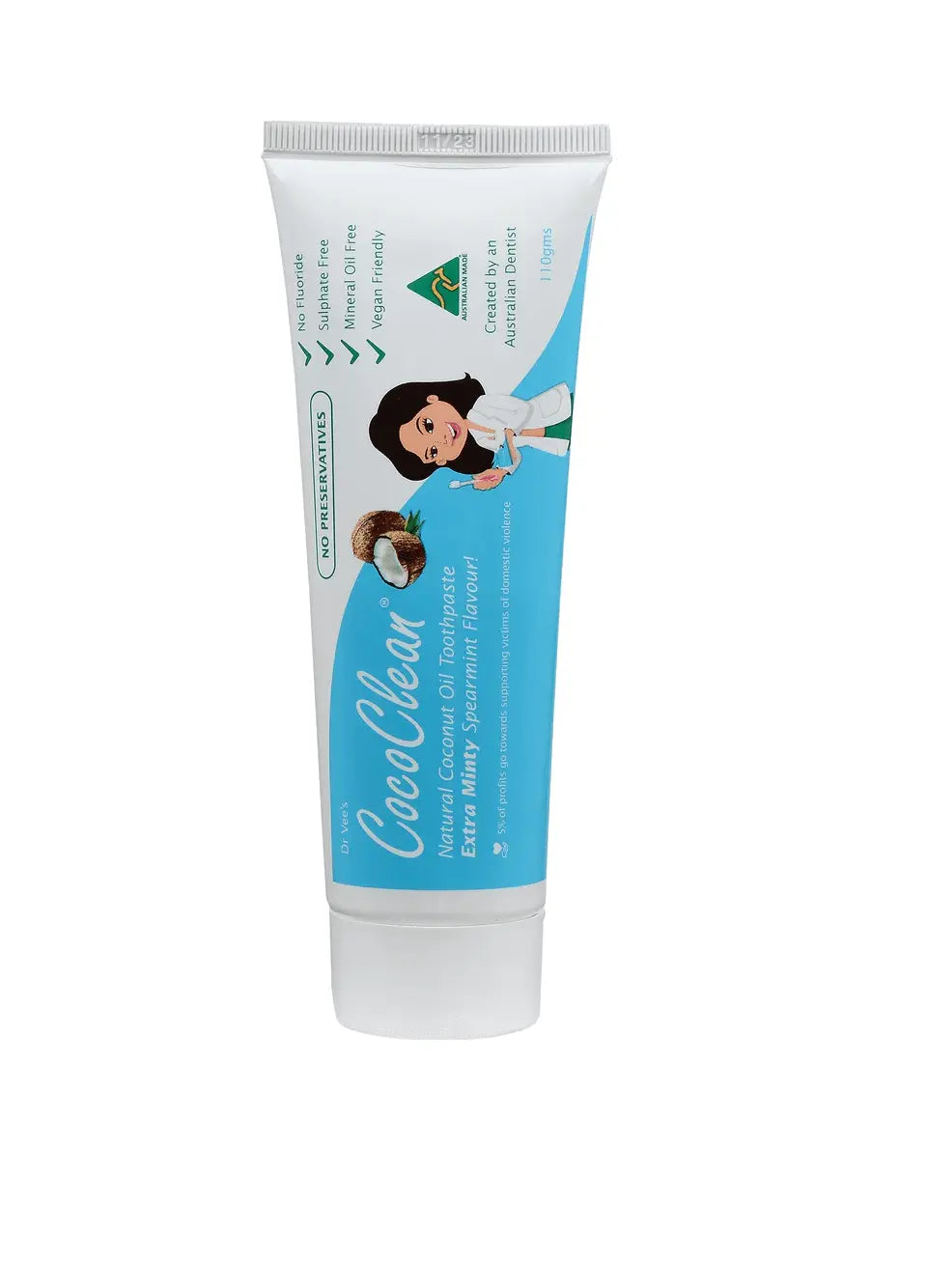 Cococlean Preservative free has an extra minty fresh flavour whilst still leaving your teeth with a satiny smooth, fresh aftertaste. This low tox toothpaste is safe and gentle for the whole family.